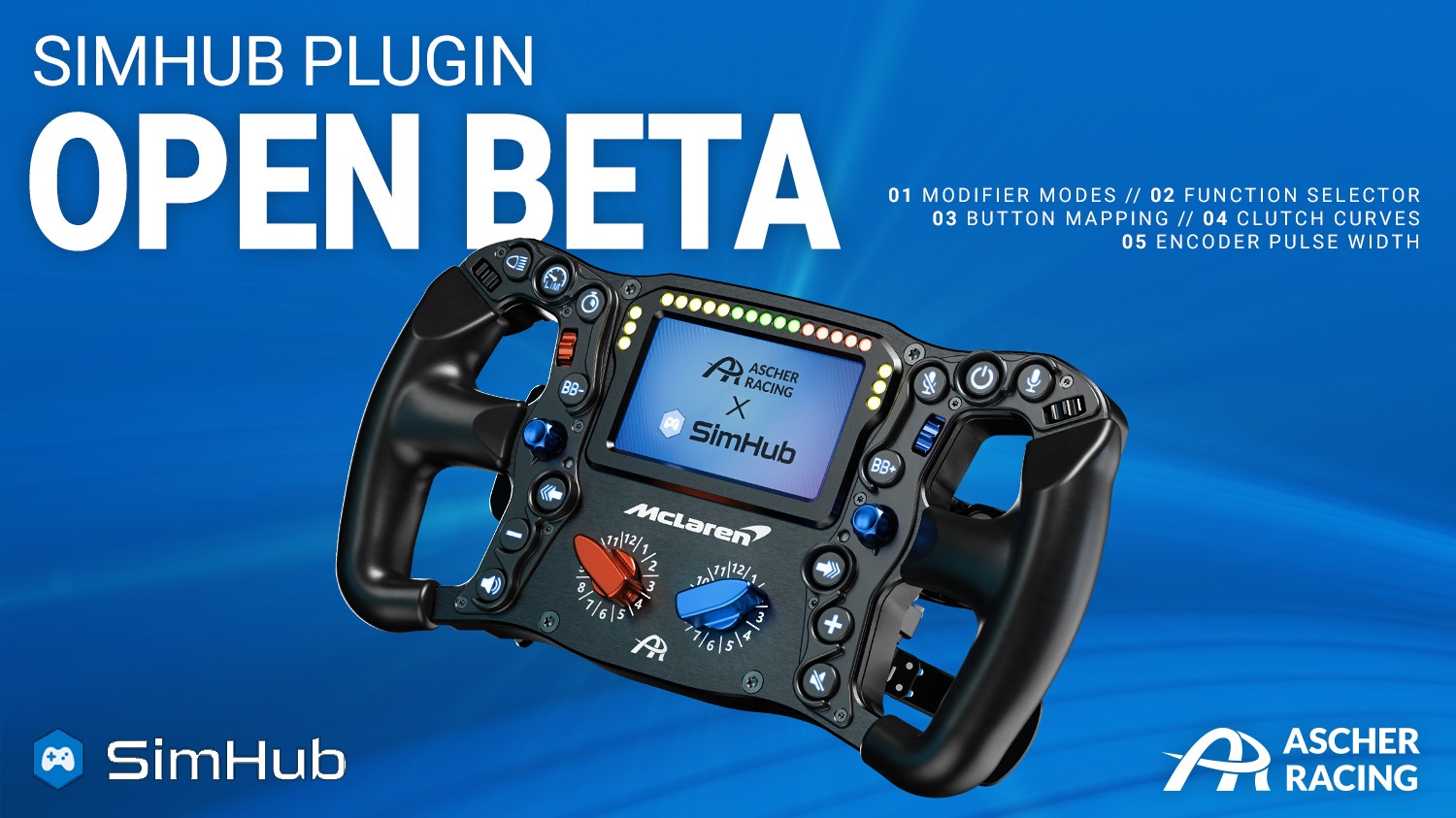 The PlugIn is being released as an Open Beta, and your feedback will play a key role in refining and expanding its capabilities. Compatible with every Ascher Racing Artura Esports USB Wheel and all Ascher Racing Dashboards.